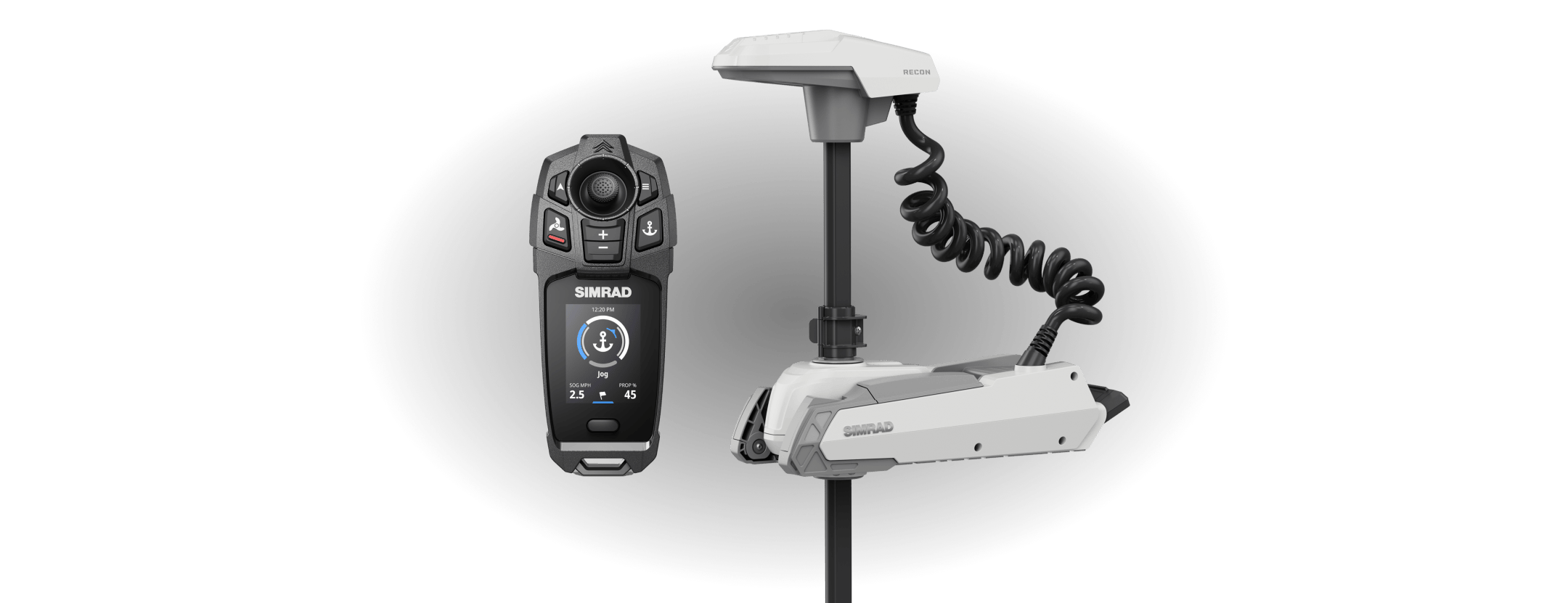 Those seeking additional control at the bow can integrate the Lowrance wireless foot pedal. Despite its branding, the product works seamlessly with Simrad RECON. Please note the Lowrance nosecone is NOT compatible with the Simrad trolling motor.