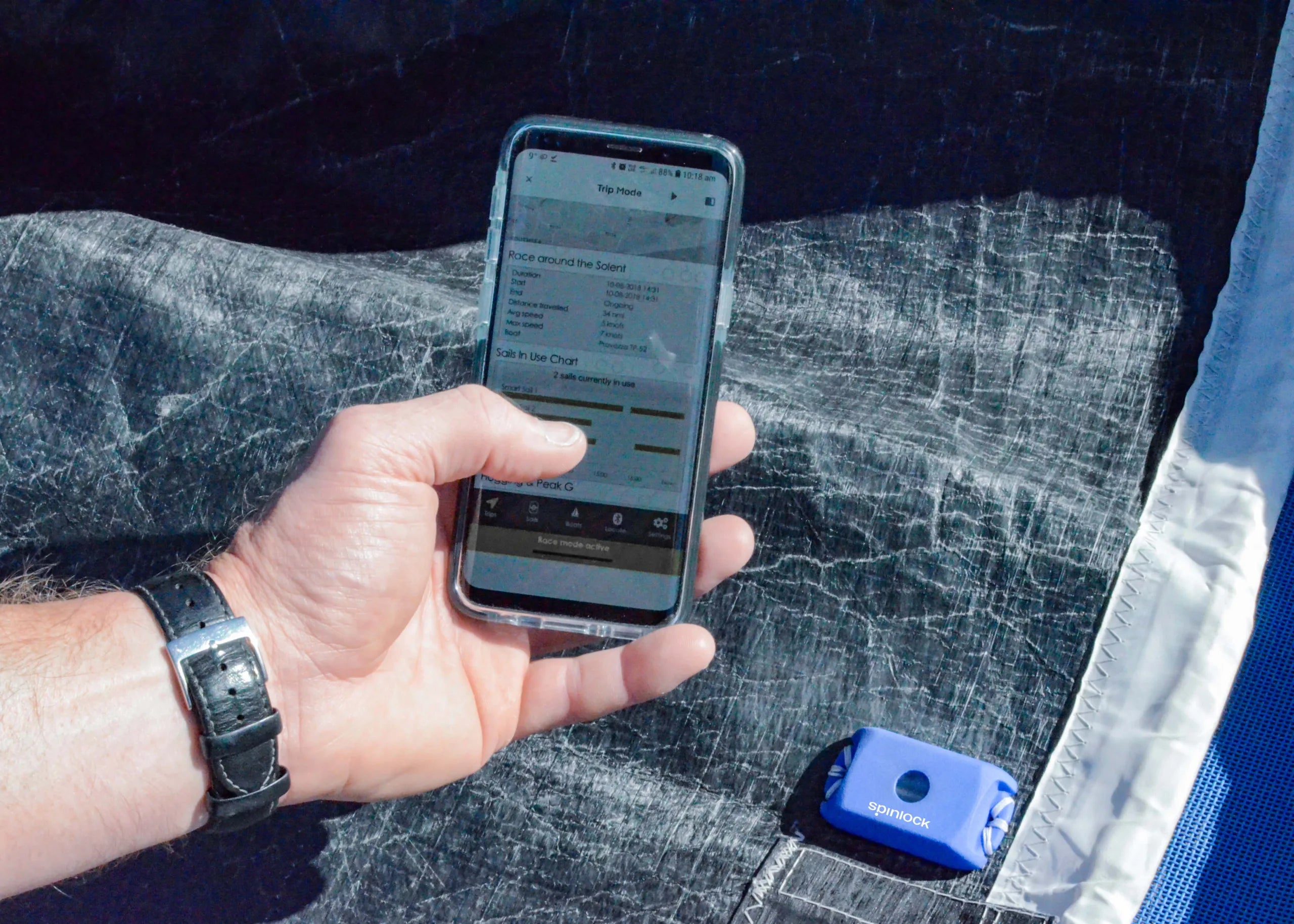 - Sewn to the sail either on construction or as an aftermarket purchase, Sail-Sense will wake up on movement, immediately logging hours of use, UV Exposure, G-Force and Flogging.