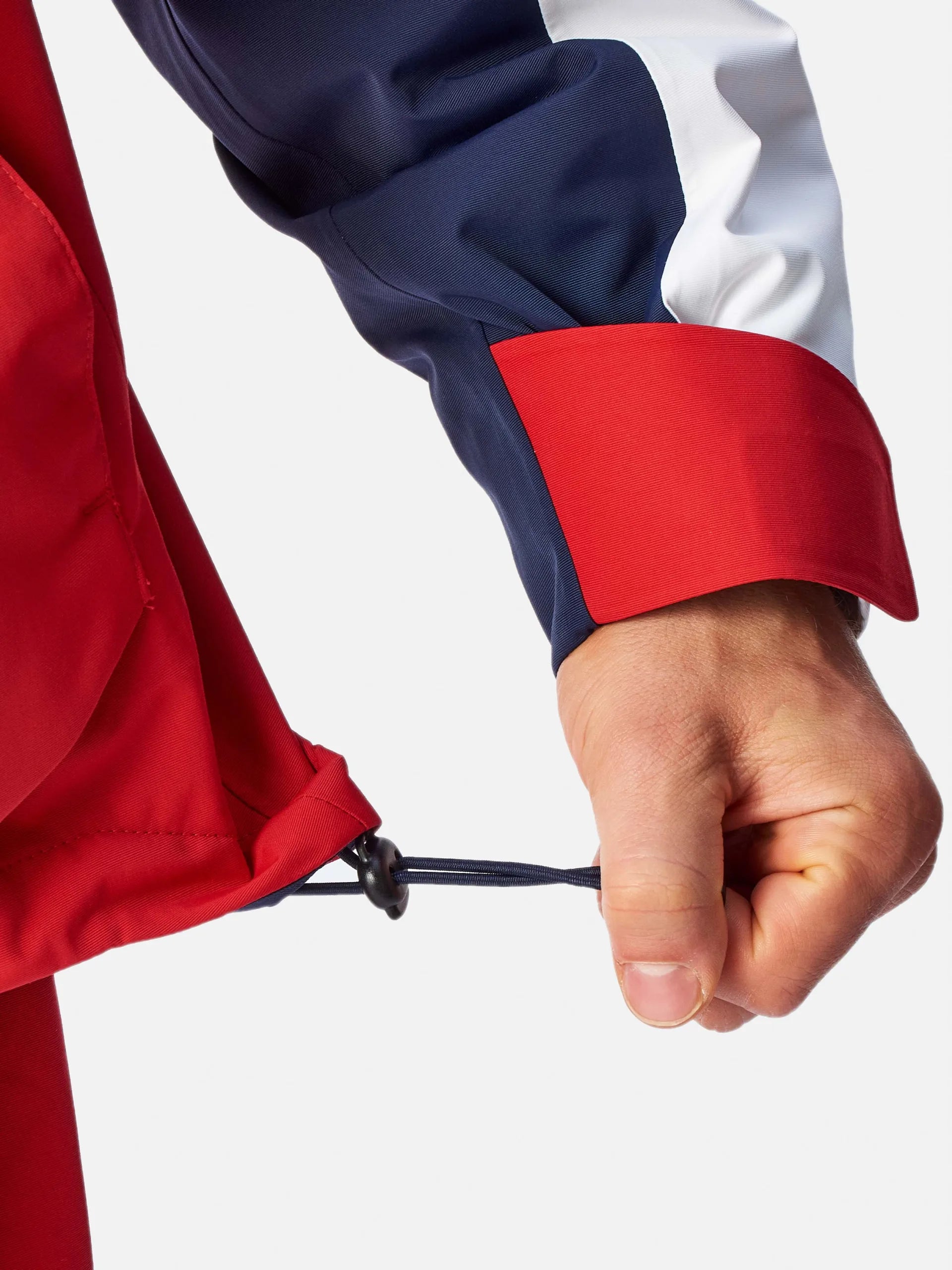 • Further protection is provided from a double storm flap and the double cuff design helps shield running water and cooler air from entering the jacket and the laminated outer cuff adjuster with hook and loop closure adds to its durability. The inner PU cuff gives a soft, next to skin, waterproof barrier.