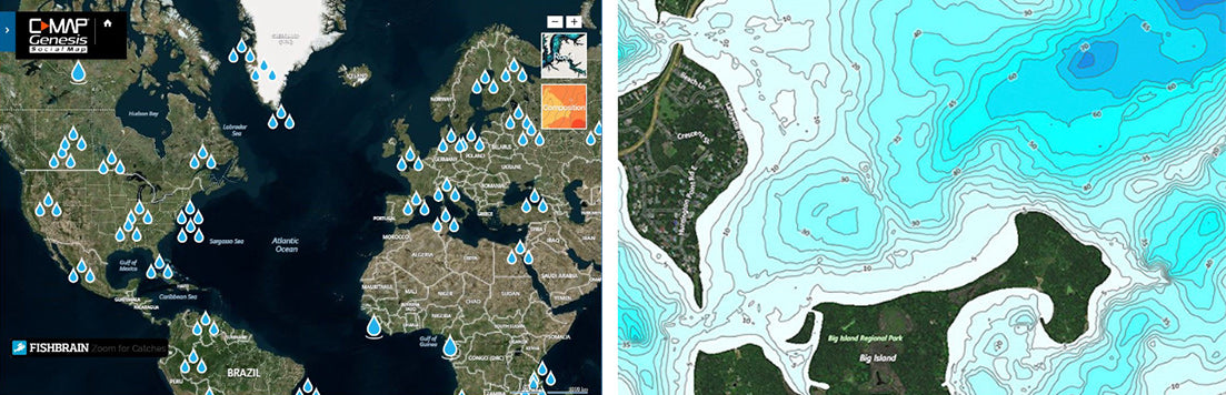 C-MAP Genesis charts have revolutionized freshwater fishing, and also offer huge advantages to saltwater anglers. Through user-generated data, precise 1-foot contour detail is available for once uncharted water systems. With features such as custom depth shading, vegetation and bottom composition layers as well as live mapping, C-MAP Genesis will help you find more fish and navigate new water safely.