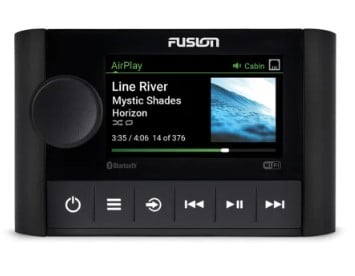 Built on the True-Marine design philosophy from Fusion, the Apollo SRX400 stereo has an IPX6 and IPX7 rated water resistant front panel and has been tested to a high level of protection against salt, fog, temperature, vibration and UV.
