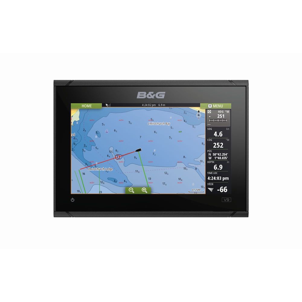 The B&G Vulcan9 FS Display is a powerful all-in-one Chart plotter and depth sounder for mid sized sail boats.