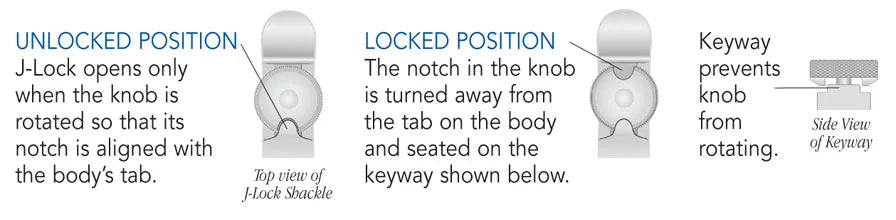 Easily spliced onto Genoa sheets, outhauls and halyards, the low-profile Tylaska J-Locks fit through most Genoa blocks for fast sheet changes. The unique patented double-locking plunger locks in two directions to provide the ultimate protection against accidental opening during flogging.