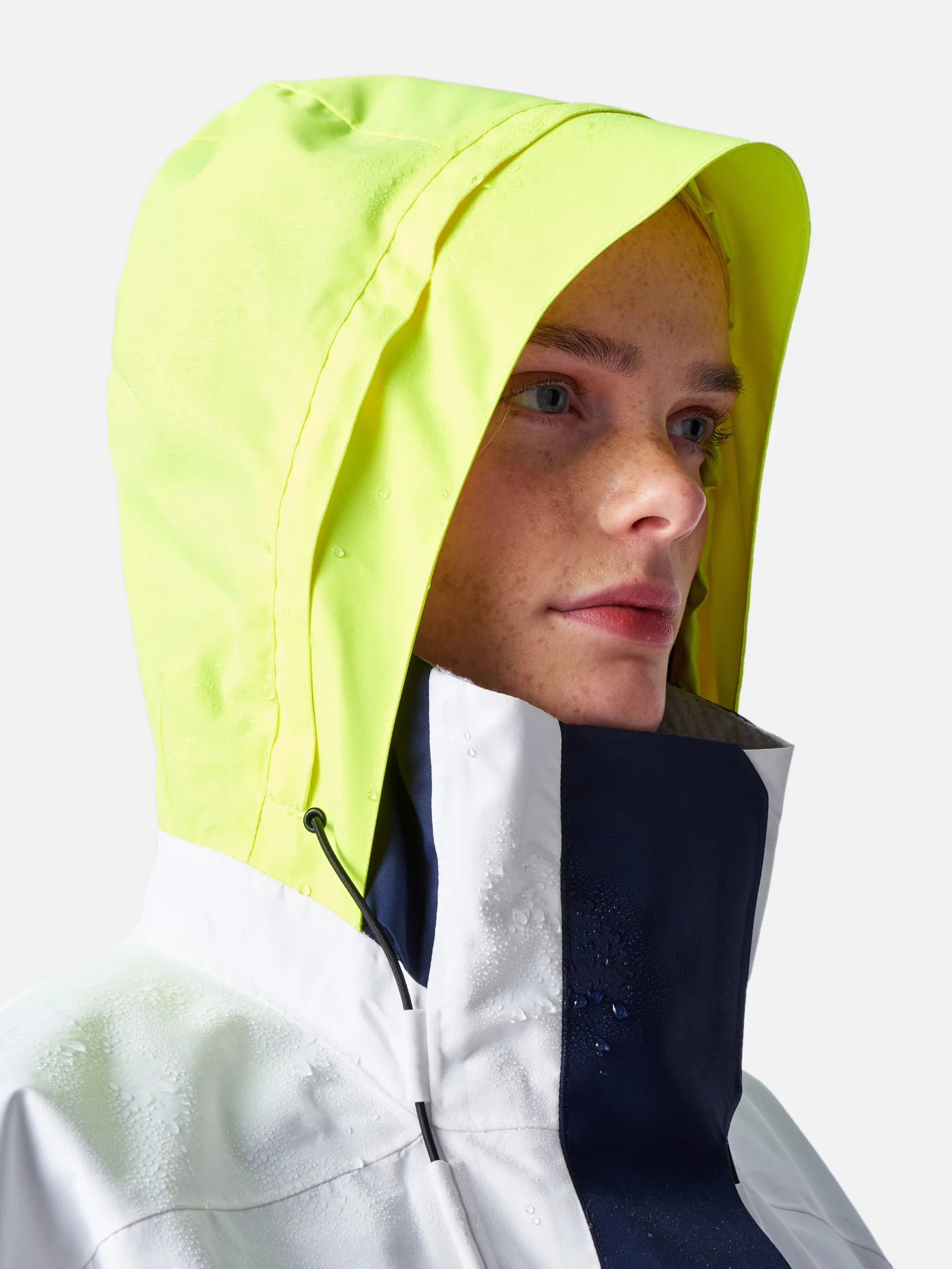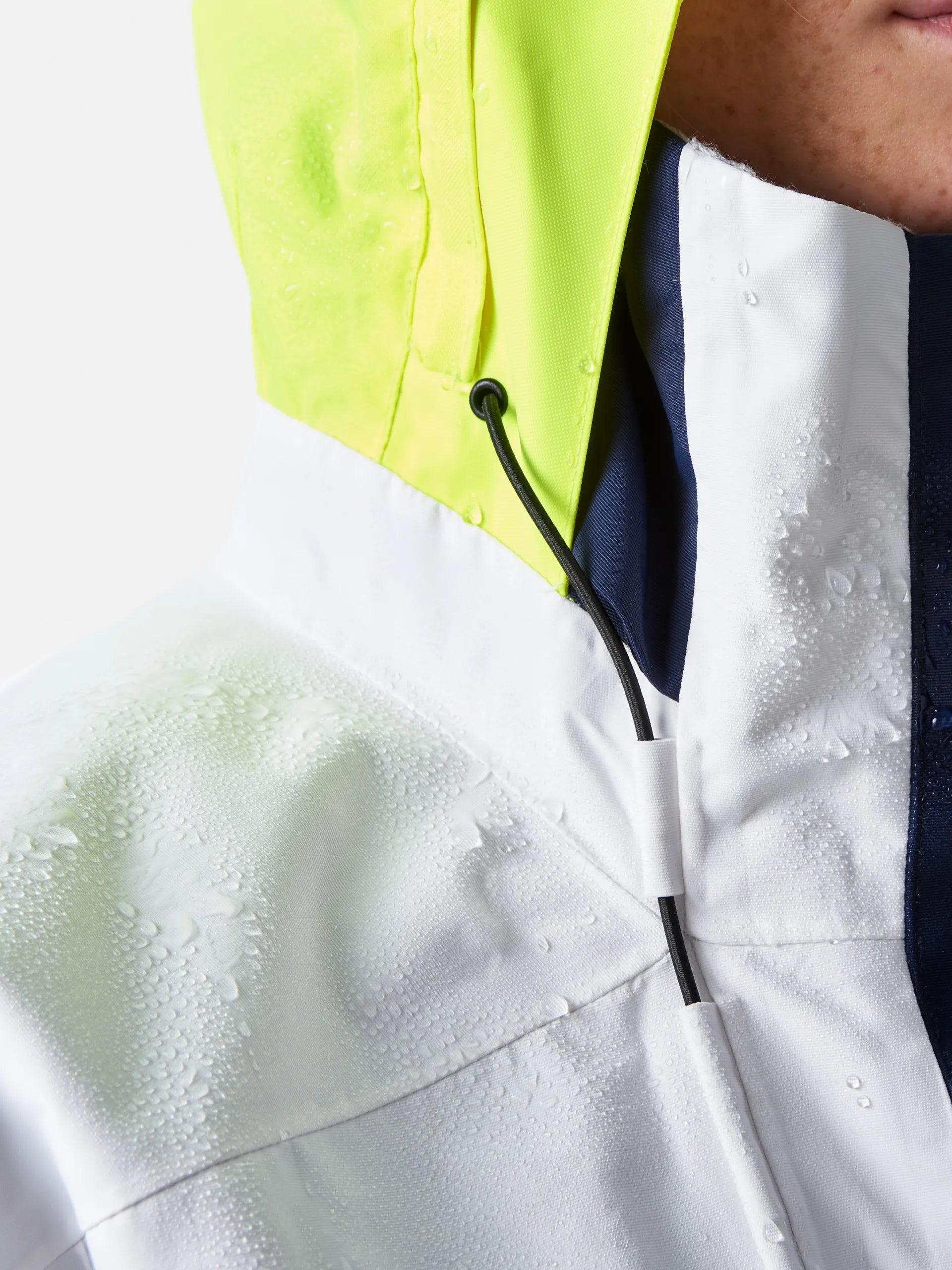 - The easy to store, adjustable, hi visibility hood includes a drainage system to take running water away from the peak.