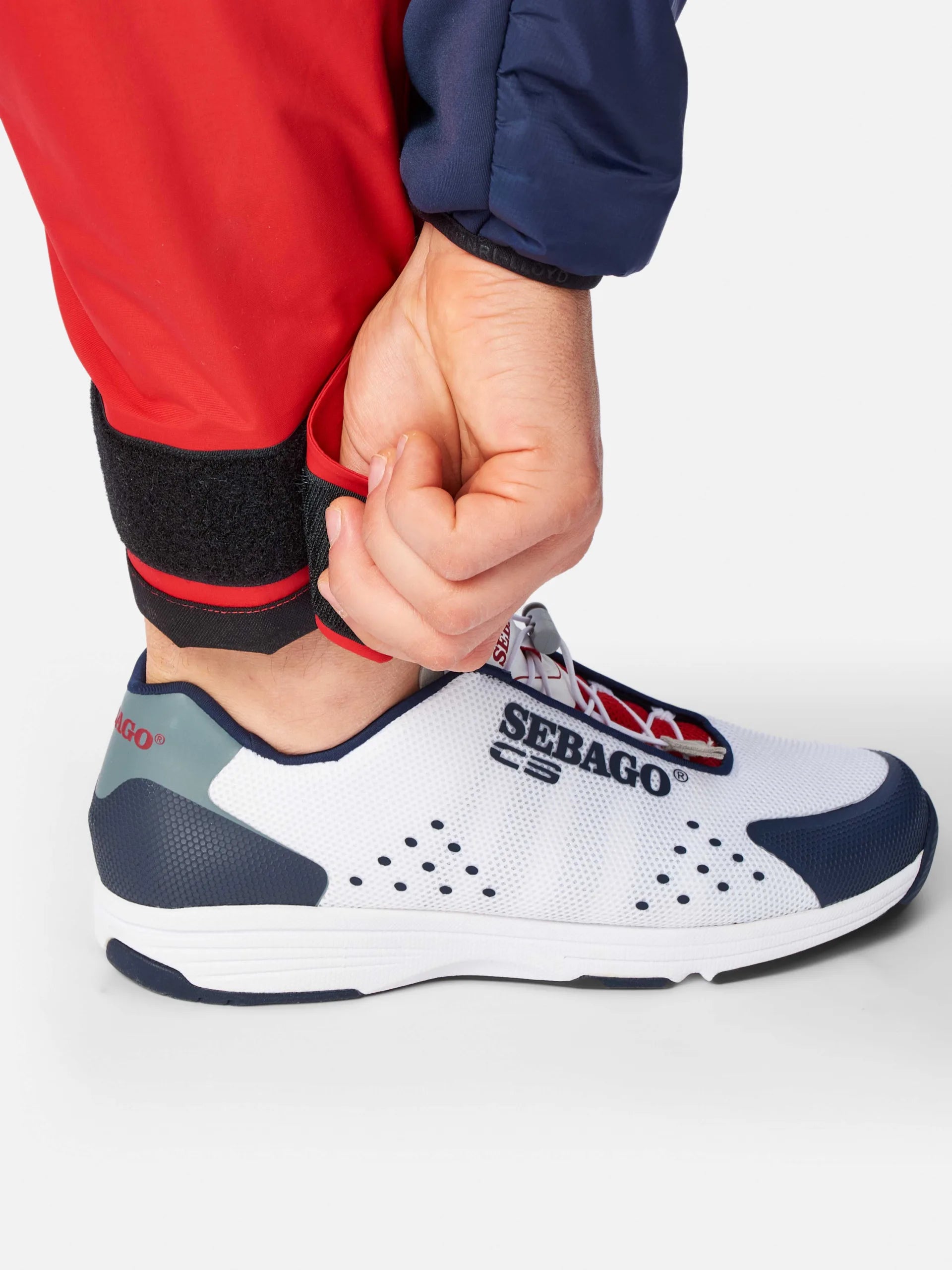 • Adjustable hook and loop ankle straps for quick and easy adjustment for a customised fit and keeping water ingress and cold winds at bay.